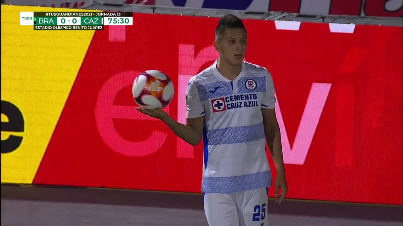 Tiro atajado raso al centro del arco. Orbelín Pineda (Cruz Azul) zurdazo desde fuera del área. Asistencia de Santiago Giménez.