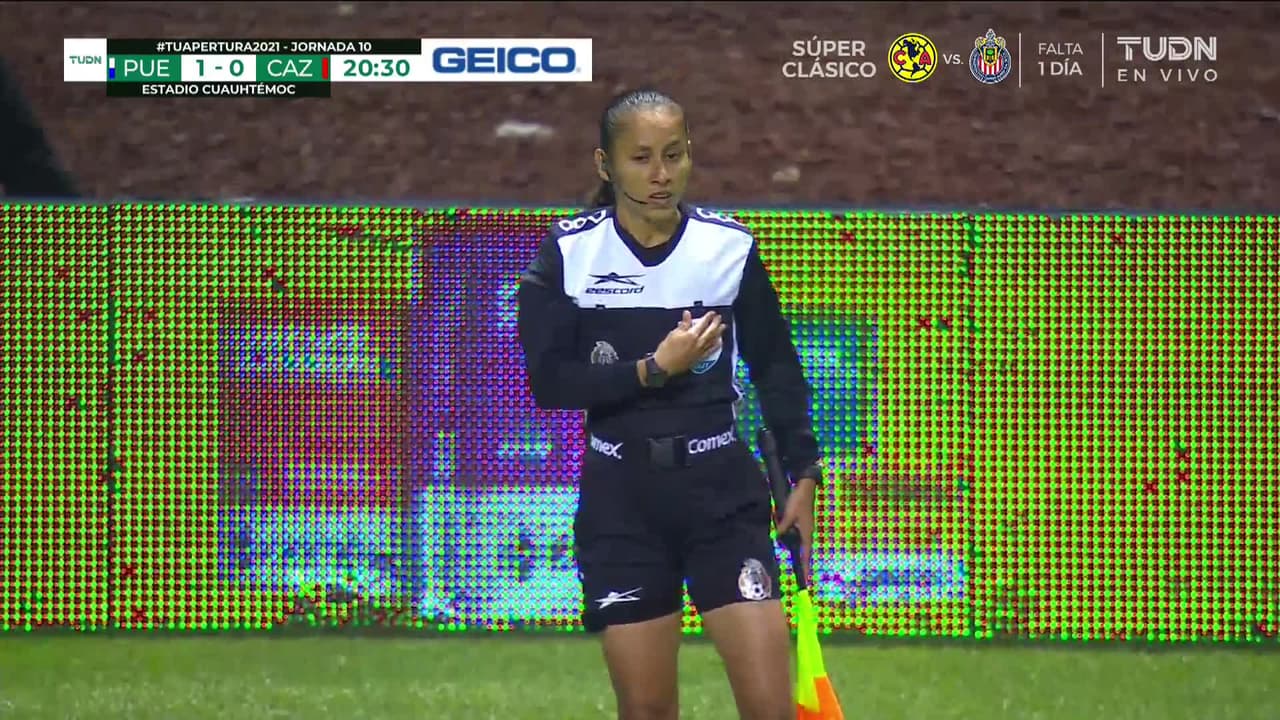 Tiro atajado raso al centro del arco. Orbelín Pineda (Cruz Azul) disparo de cabeza desde el centro del área. Asistencia de Juan Escobar con un centro al área.