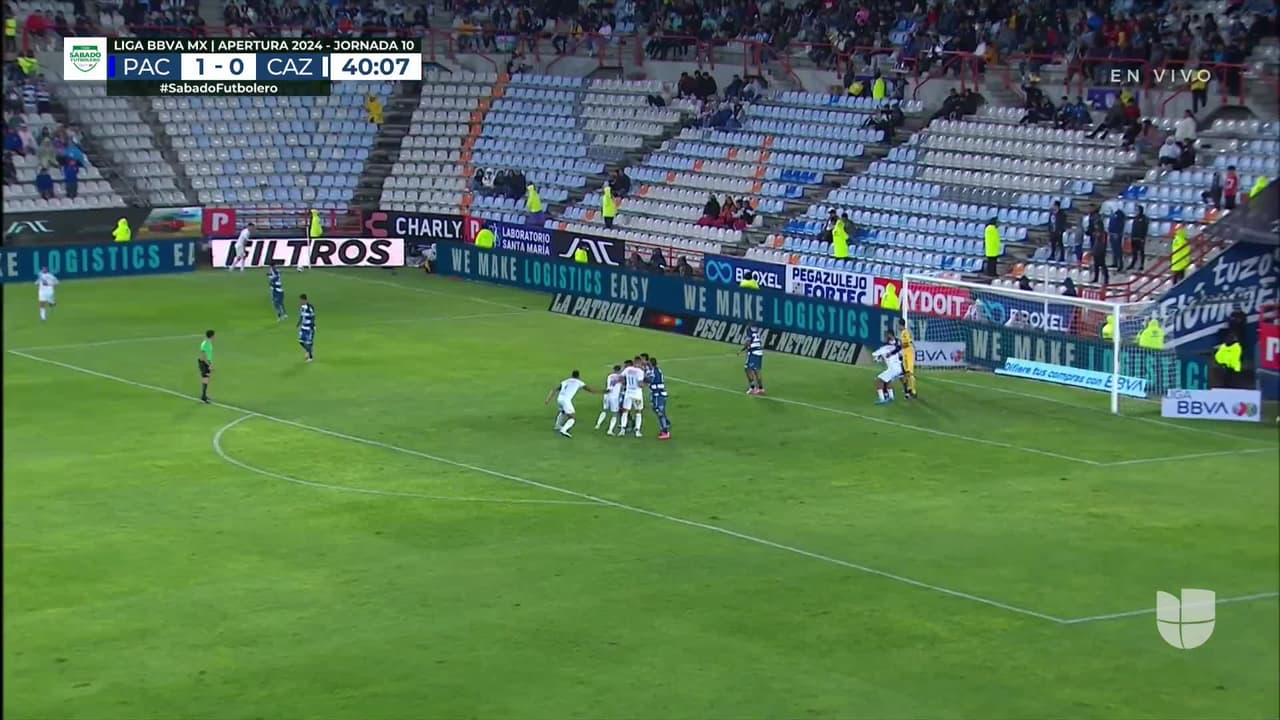 Tiro atajado junto al lado derecho de la portería. Owen González (Pachuca) Disparo con la derecha desde fuera del área. Asistencia de Oussama Idrissi pase largo.