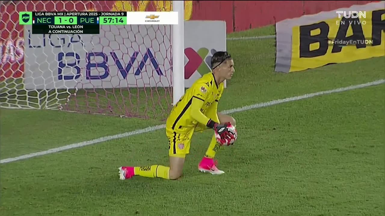 Tiro atajado. Owen González (Puebla) Disparo con la derecha desde fuera del área.