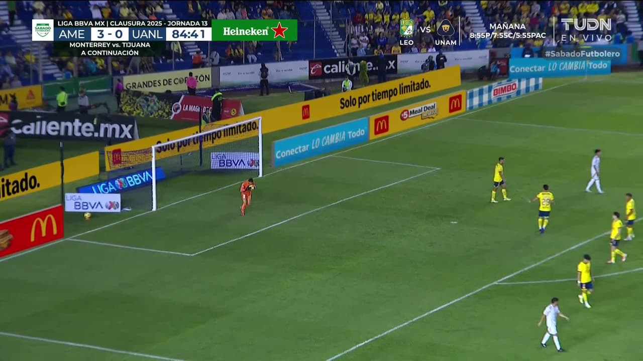 Tiro atajado. Ozziel Herrera (Tigres) Disparo con la derecha desde fuera del área.