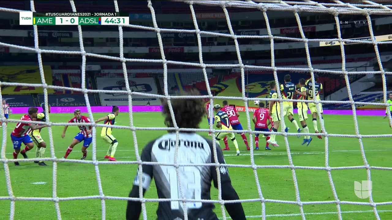 Tiro atajado por abajo a la izquierda. Pablo Barrera (Atlético San Luis) Disparo con la derecha desde fuera del área.