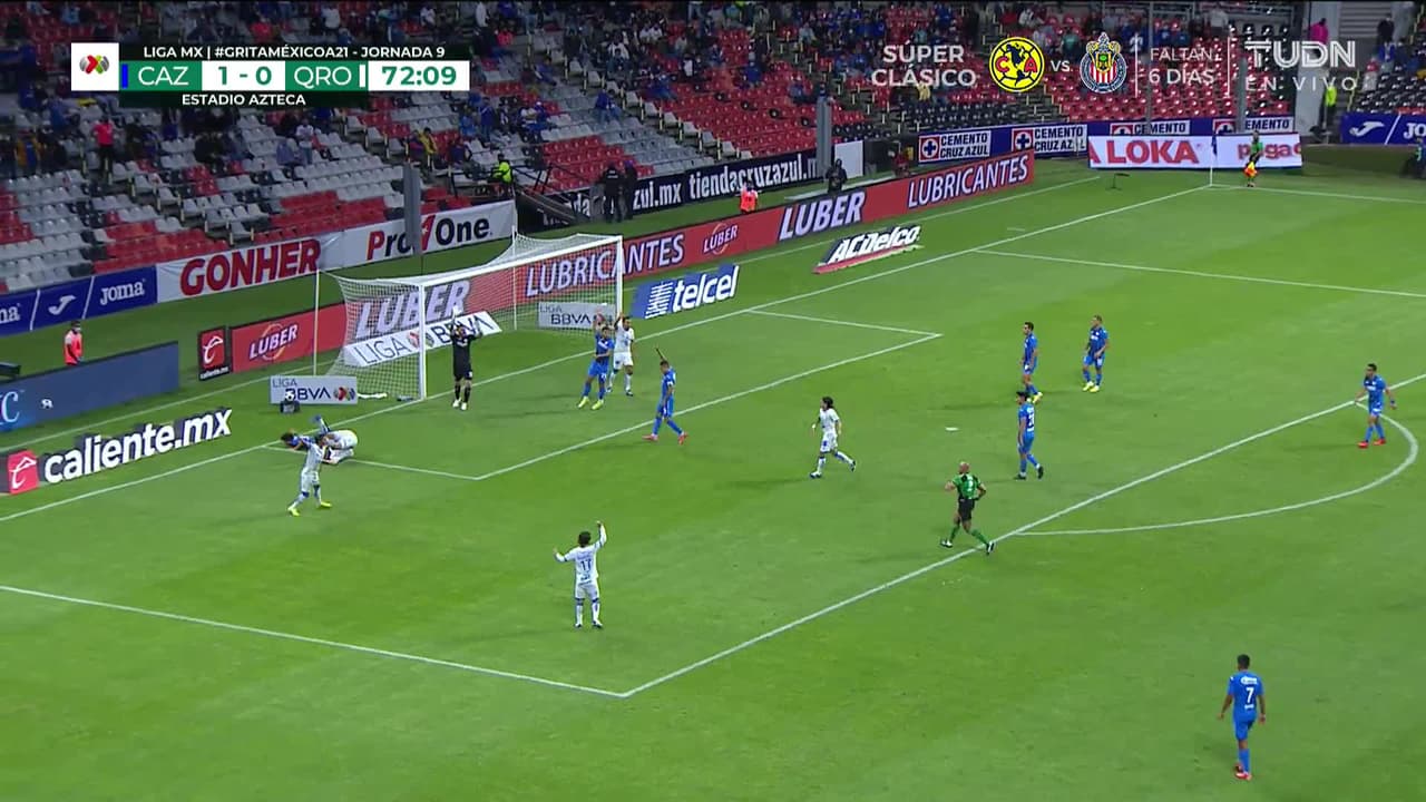 Tiro atajado por abajo a la izquierda. Pablo Barrera (Querétaro) Disparo con la derecha desde fuera del área. Asistencia de Raúl Torres.