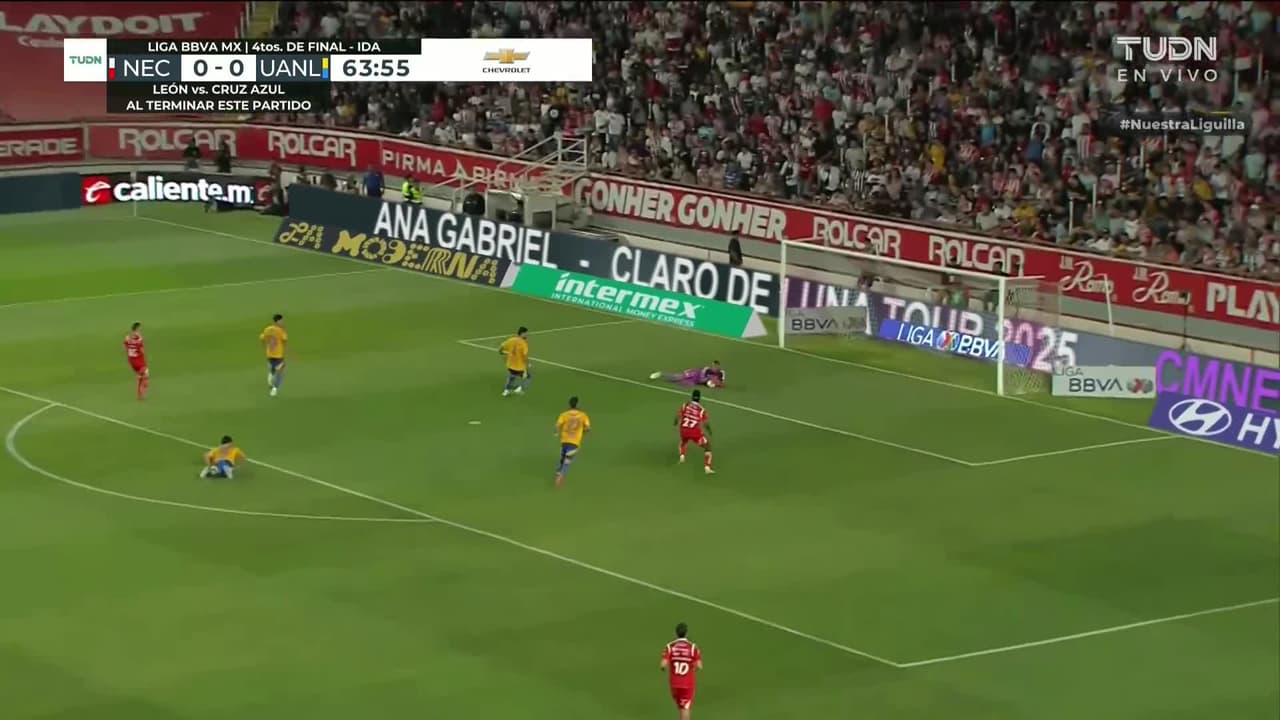 Tiro atajado. Pável Pérez (Necaxa) zurdazo desde muy lejos y sin ángulo.