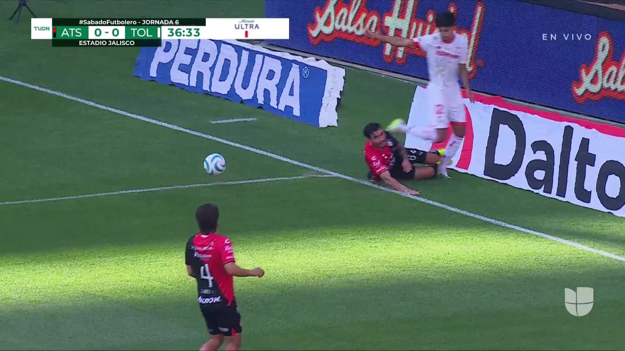 Tiro atajado junto al lado derecho de la portería. Pedro Raul (Toluca) Disparo con la derecha sin ángulo desde la derecha. Asistencia de Tiago Volpi pase largo.