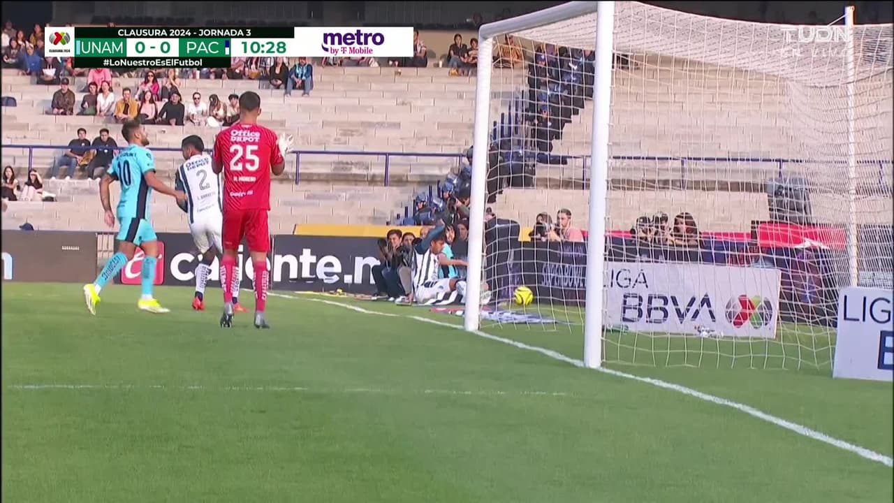 Tiro atajado. Piero Quispe (Pumas UNAM) zurdazo a quemarropa desde el lado izquierdo.