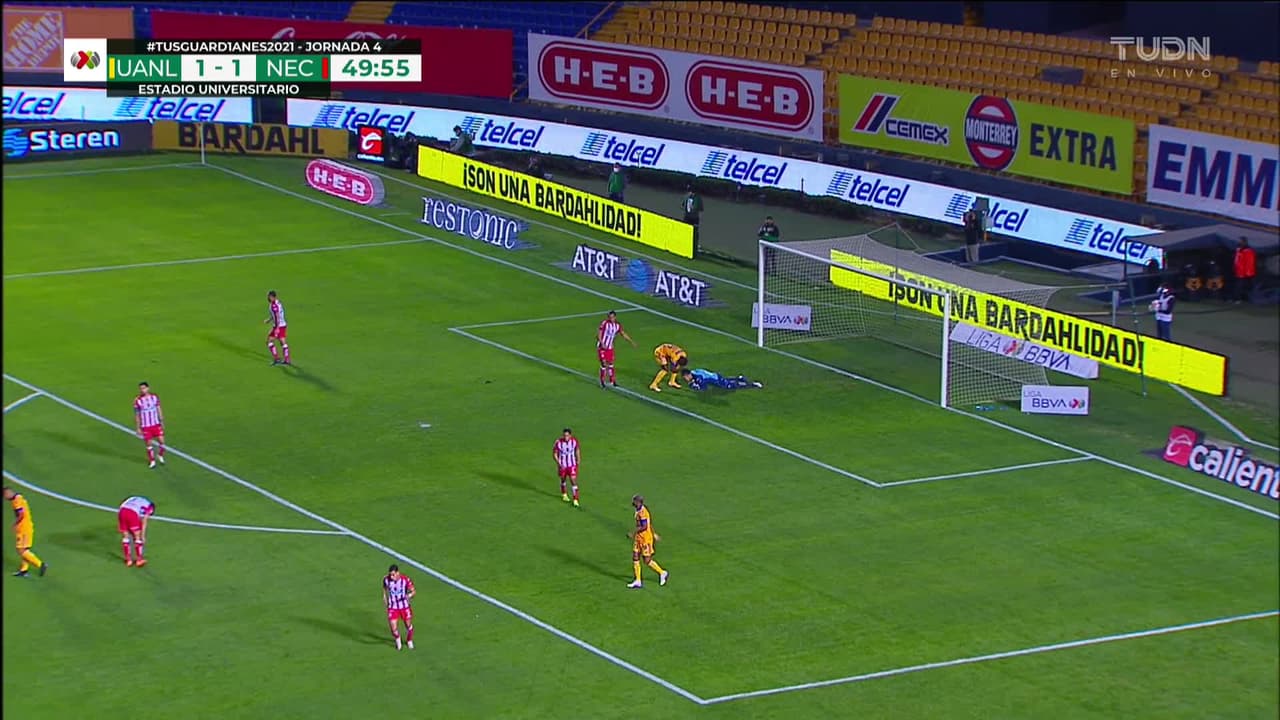 Tiro atajado. Rafael Carioca (Tigres) Disparo con la derecha desde fuera del área.
