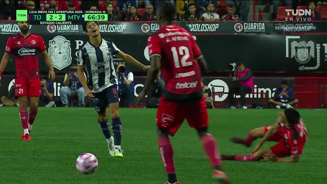 Tiro atajado. Ramiro Árciga (Club Tijuana) zurdazo desde muy lejos por la izquierda y en posición complicada.