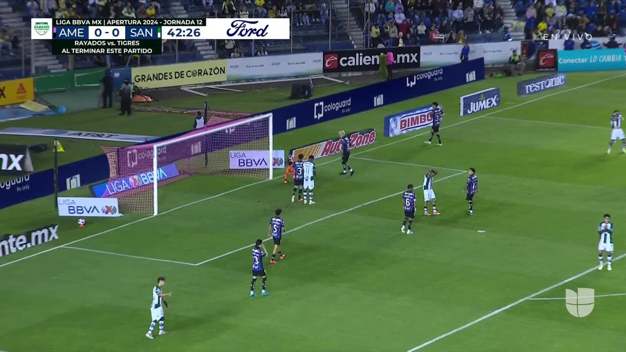 Tiro atajado. Ramiro Sordo (Santos Laguna) Disparo con la derecha desde el lado izquierdo dentro del área.