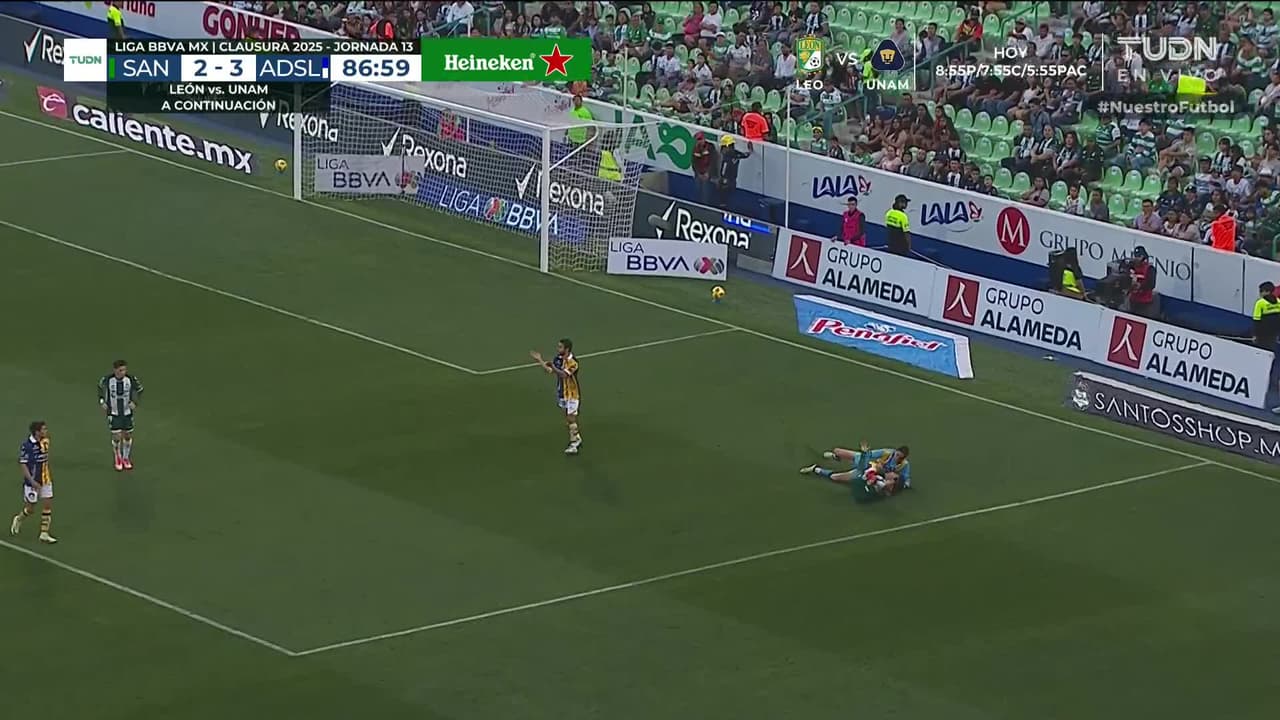Tiro atajado junto al lado derecho de la portería. Ramiro Sordo (Santos Laguna) Disparo con la derecha desde fuera del área. Asistencia de Franco Fagúndez pase largo.