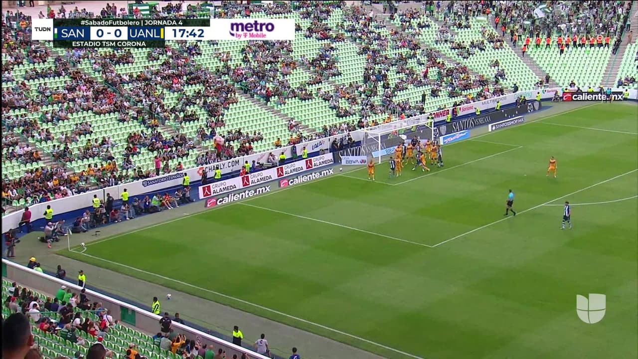 Tiro atajado Por arriba en el centro del arco. Ramiro Sordo (Santos Laguna) Disparo con la derecha desde fuera del área.
