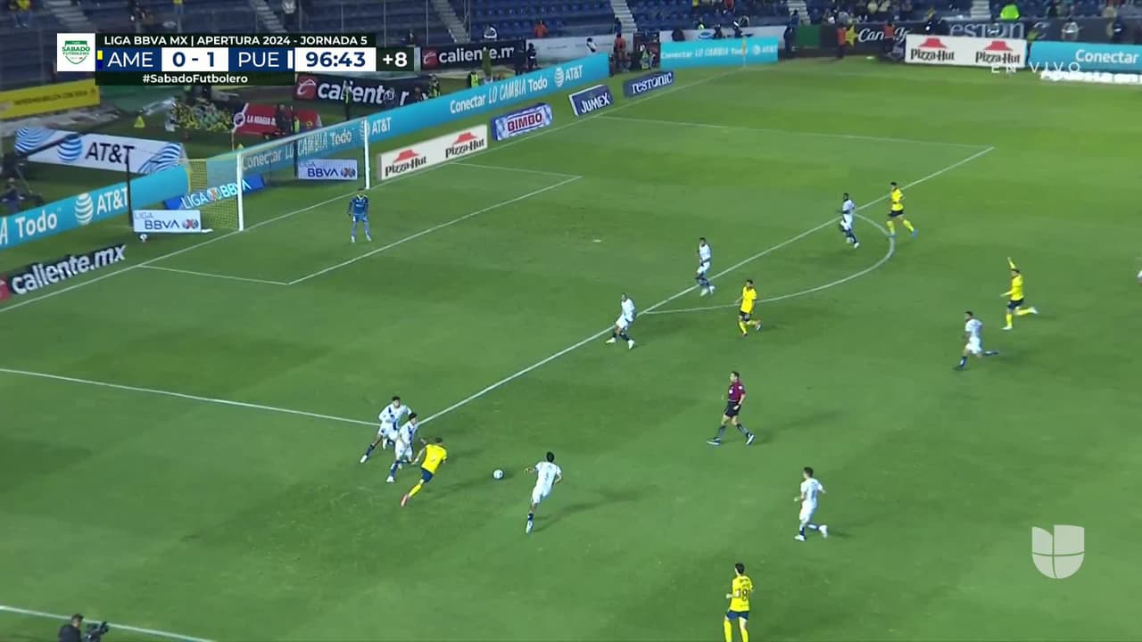 Tiro atajado. Ramón Juárez (América) Disparo con la derecha desde fuera del área.