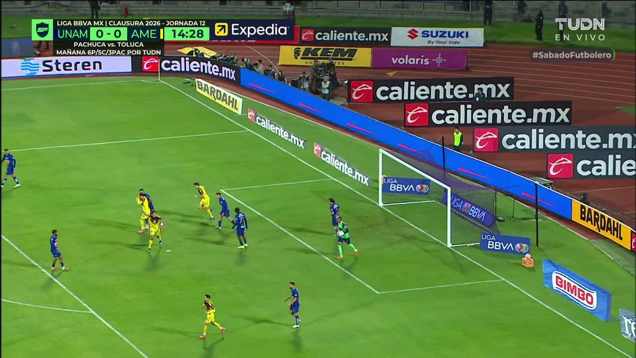 Tiro atajado. Raphael Veiga (América) disparo de cabeza desde el centro del área.