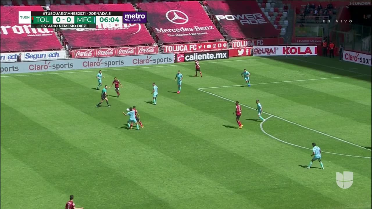Tiro atajado raso al centro del arco. Raúl López (Toluca) Disparo con la derecha desde fuera del área. Asistencia de Claudio Baeza.