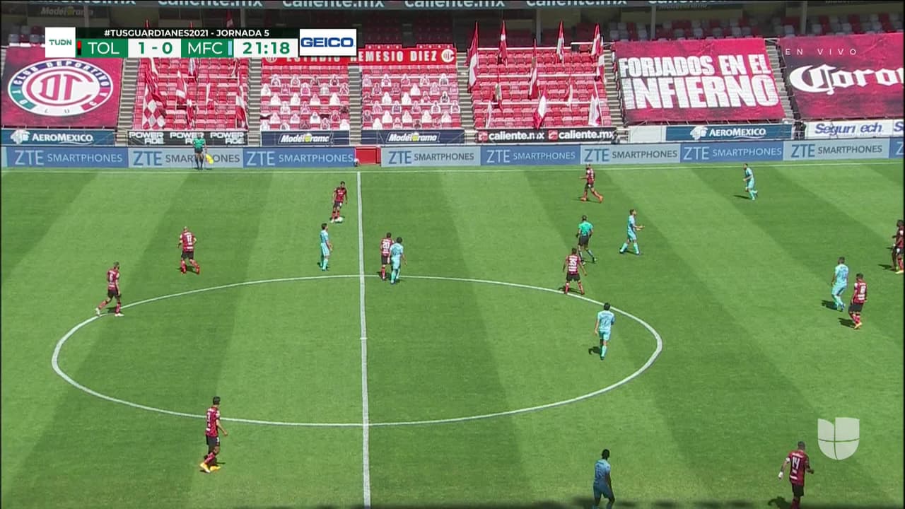 Tiro atajado Por arriba en el centro del arco. Raúl López (Toluca) zurdazo desde fuera del área. Asistencia de Michael Estrada.