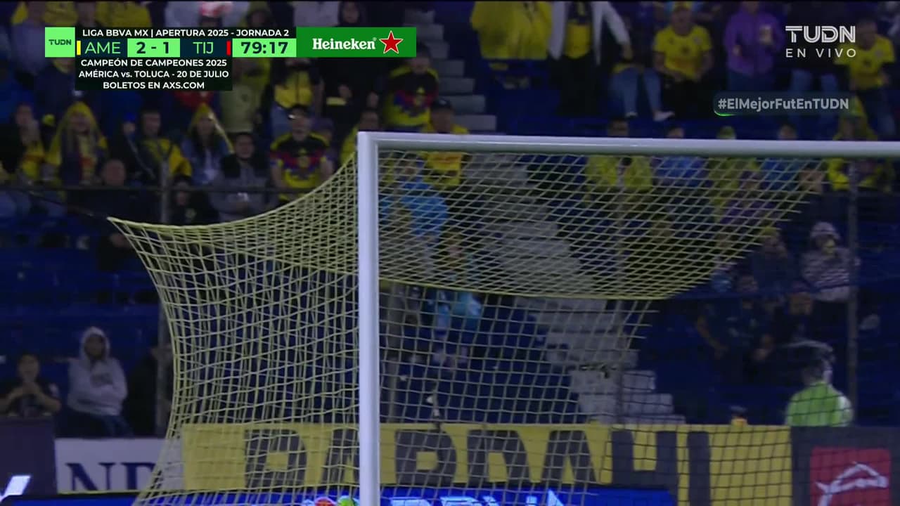 Tiro atajado al ángulo superior derecho. Raúl Zúñiga (América) Disparo con la derecha desde el centro del área. Asistencia de Álex Zendejas.