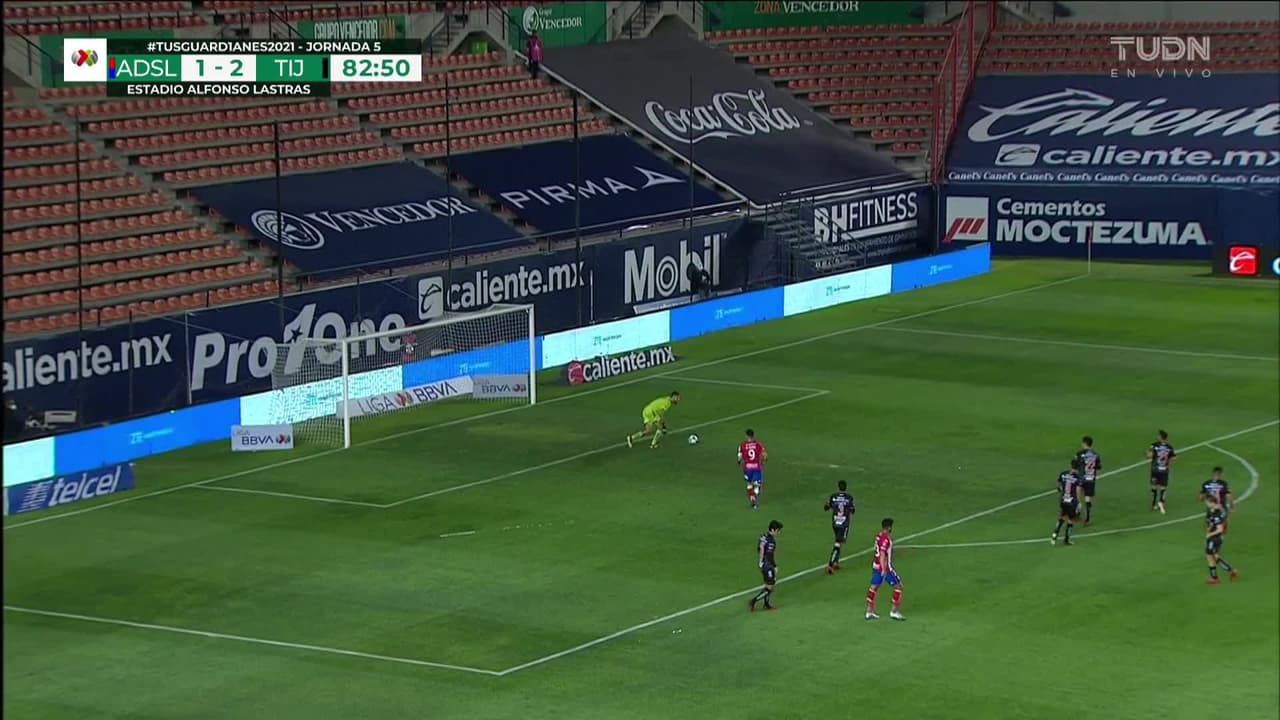 Tiro atajado raso al centro del arco. Ricardo Chávez (Atlético San Luis) Disparo con la derecha desde más de 30 metros. Asistencia de Lucas Passerini.