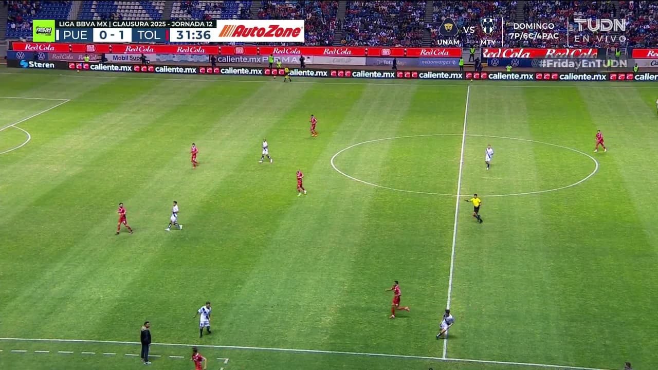 Tiro atajado por abajo a la izquierda. Ricardo Marín (Puebla) zurdazo desde el lado derecho dentro del área. Asistencia de Emanuel Gularte después de un pase en profundidad.