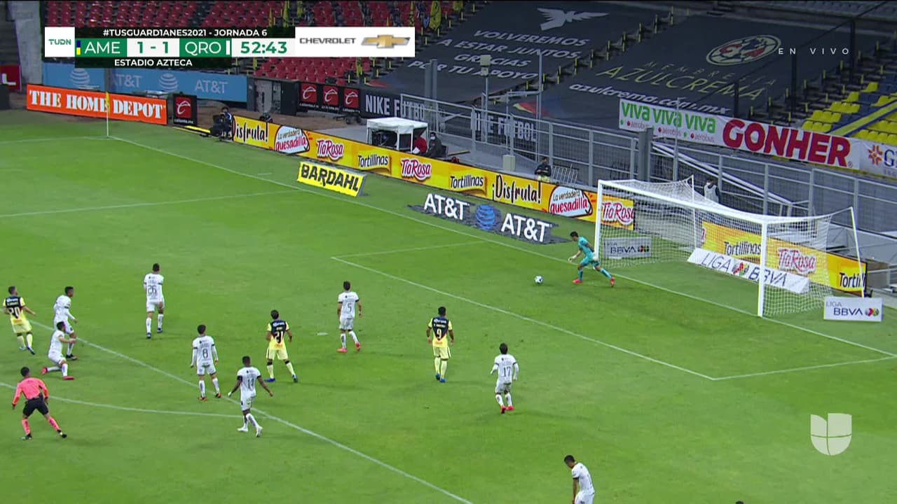 Tiro atajado raso al centro del arco. Richard Sánchez (América) Disparo con la derecha desde fuera del área. Asistencia de Henry Martín.
