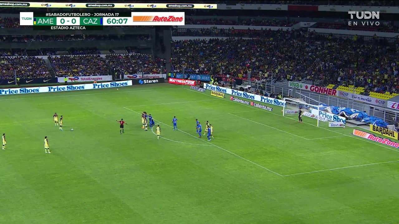 Tiro atajado al ángulo superior derecho. Richard Sánchez (América) Disparo con la derecha desde fuera del área.