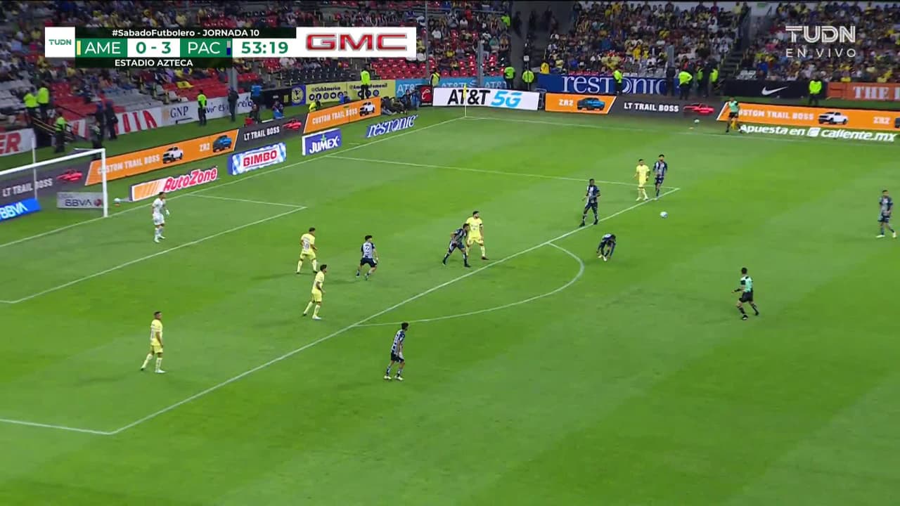 Tiro atajado Por arriba en el centro del arco. Richard Sánchez (América) zurdazo desde fuera del área. Asistencia de Salvador Reyes.