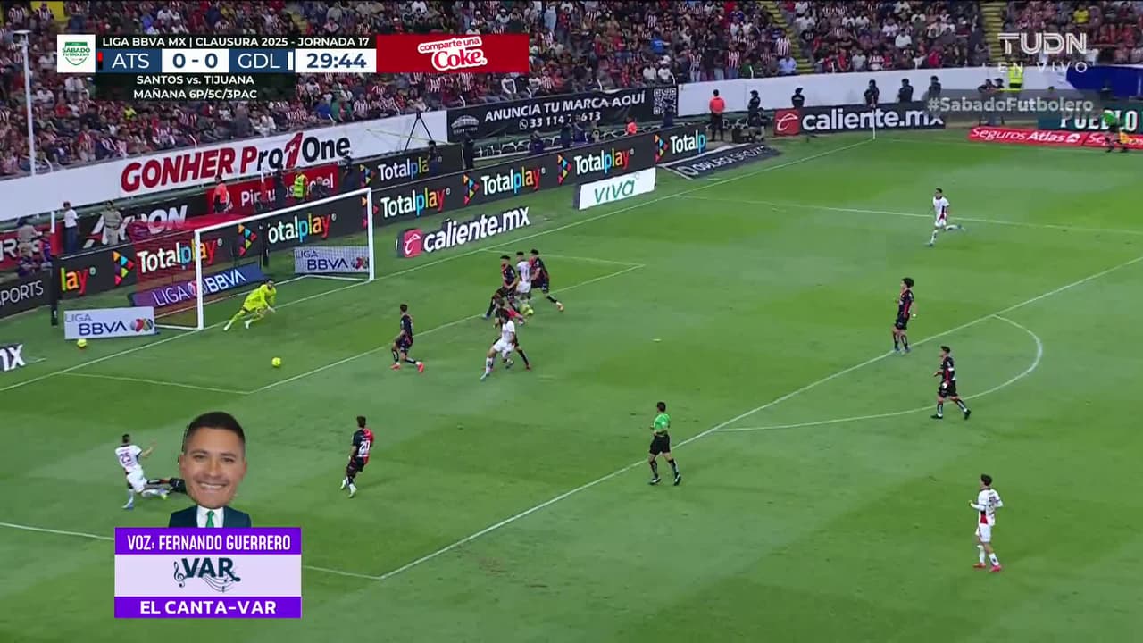 Tiro atajado junto al lado derecho de la portería. Roberto Alvarado (Chivas ) zurdazo desde el lado izquierdo dentro del área. Asistencia de Mateo Chávez.