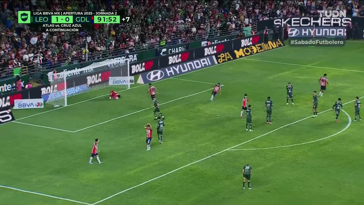 Tiro atajado. Roberto Alvarado (Chivas ) zurdazo desde fuera del área.