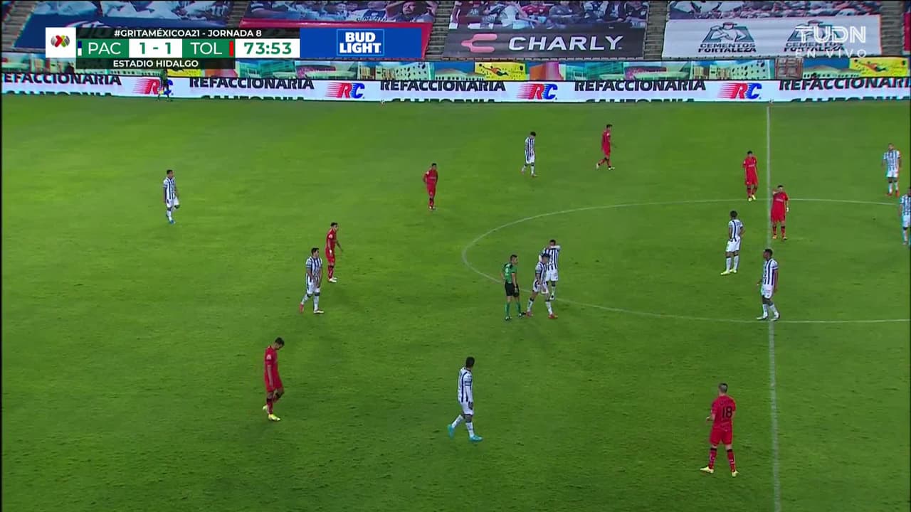 Remate parado junto al lado derecho de la portería. Roberto de la Rosa (Pachuca) remate con la derecha desde el lado derecho del interior del área. Asistencia de Víctor Guzmán.
