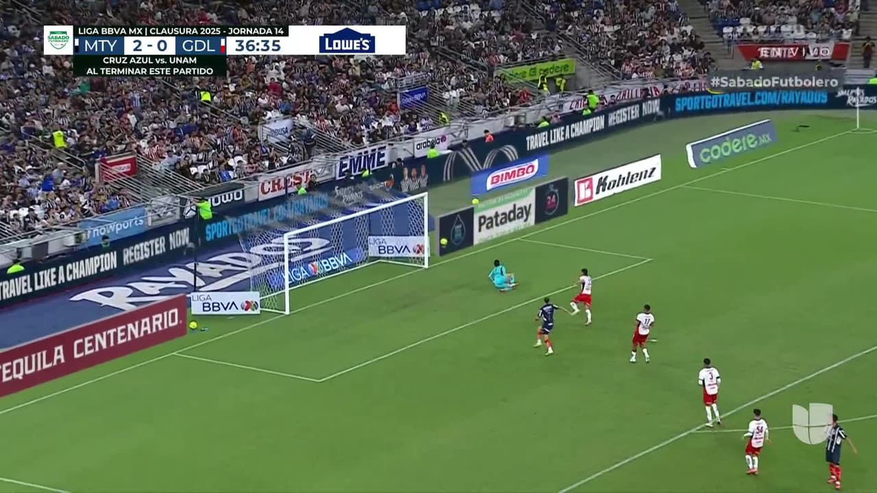 Tiro atajado al ángulo superior derecho. Roberto de la Rosa (Monterrey) Disparo con la derecha desde fuera del área. Asistencia de Germán Berterame.