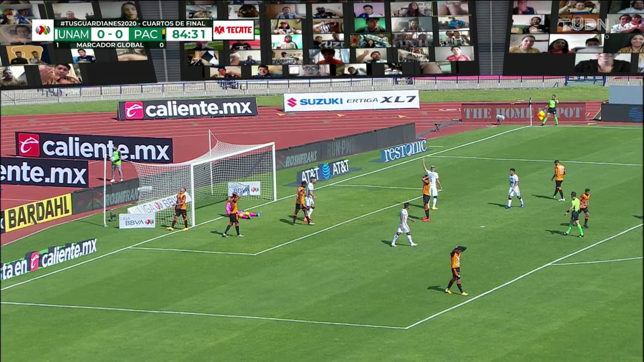 Tiro atajado por abajo a la izquierda. Roberto Nurse (Pachuca) disparo de cabeza desde el centro del área. Asistencia de Luis Chávez con un centro al área.