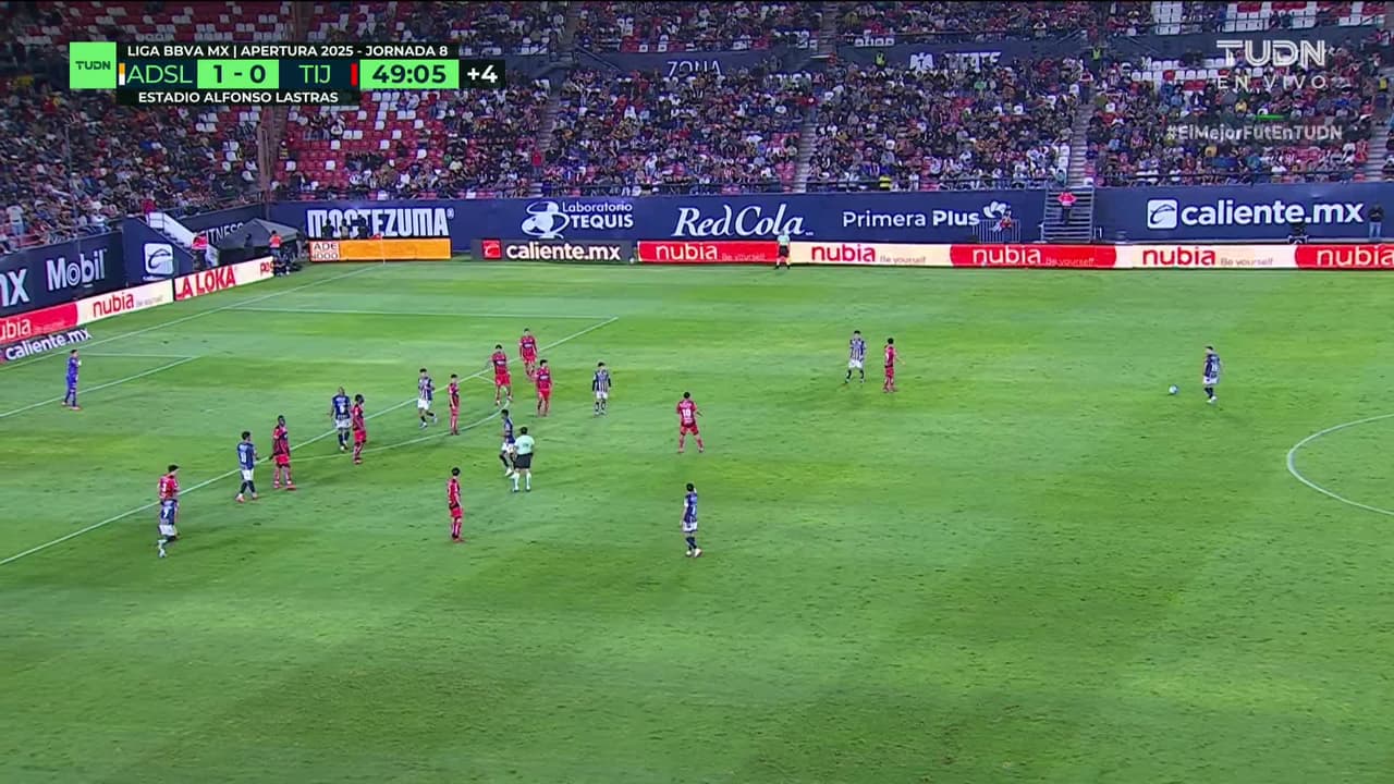 Tiro atajado Por arriba en el centro del arco. Robson Bambu (Atlético San Luis) disparo de cabeza desde el centro del área. Asistencia de Sébastien Salles-Lamonge pase largo.