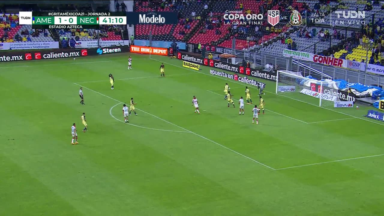 Tiro atajado por abajo a la izquierda. Rodrigo Aguirre (Necaxa) zurdazo desde fuera del área. Asistencia de Ángel Sepúlveda.