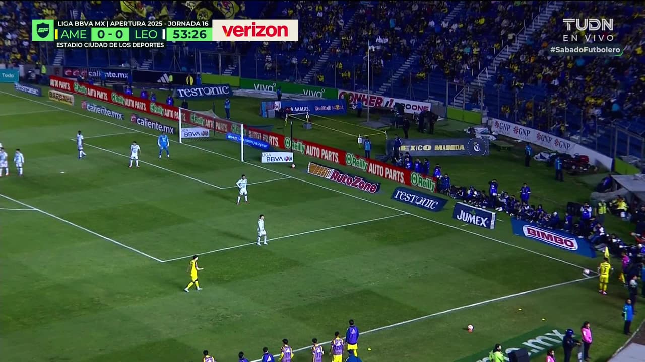 Tiro atajado raso al centro del arco. Rodrigo Aguirre (América) disparo de cabeza desde el centro del área. Asistencia de Brian Rodríguez con un centro al área.
