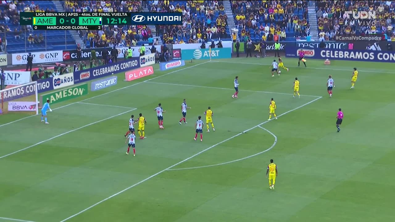 Tiro atajado raso al centro del arco. Rodrigo Aguirre (América) Disparo con la derecha desde el centro del área. Asistencia de Érick Sánchez.