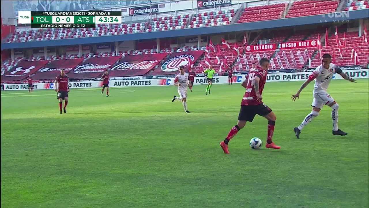 Tiro atajado al ángulo superior derecho. Rodrigo Salinas (Toluca) Disparo con la derecha desde fuera del área. Asistencia de Rubens Sambueza.