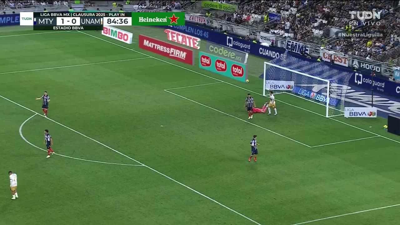 Tiro atajado. Rogelio Funes Mori (Pumas UNAM) Disparo con la derecha desde fuera del área.