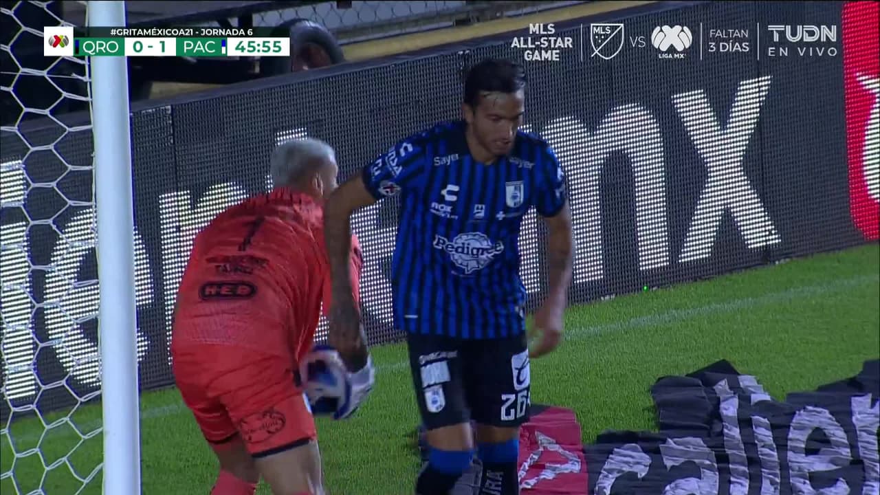 Tiro atajado junto al lado derecho de la portería. Romario Ibarra (Pachuca) Disparo con la derecha desde el lado derecho dentro del área.