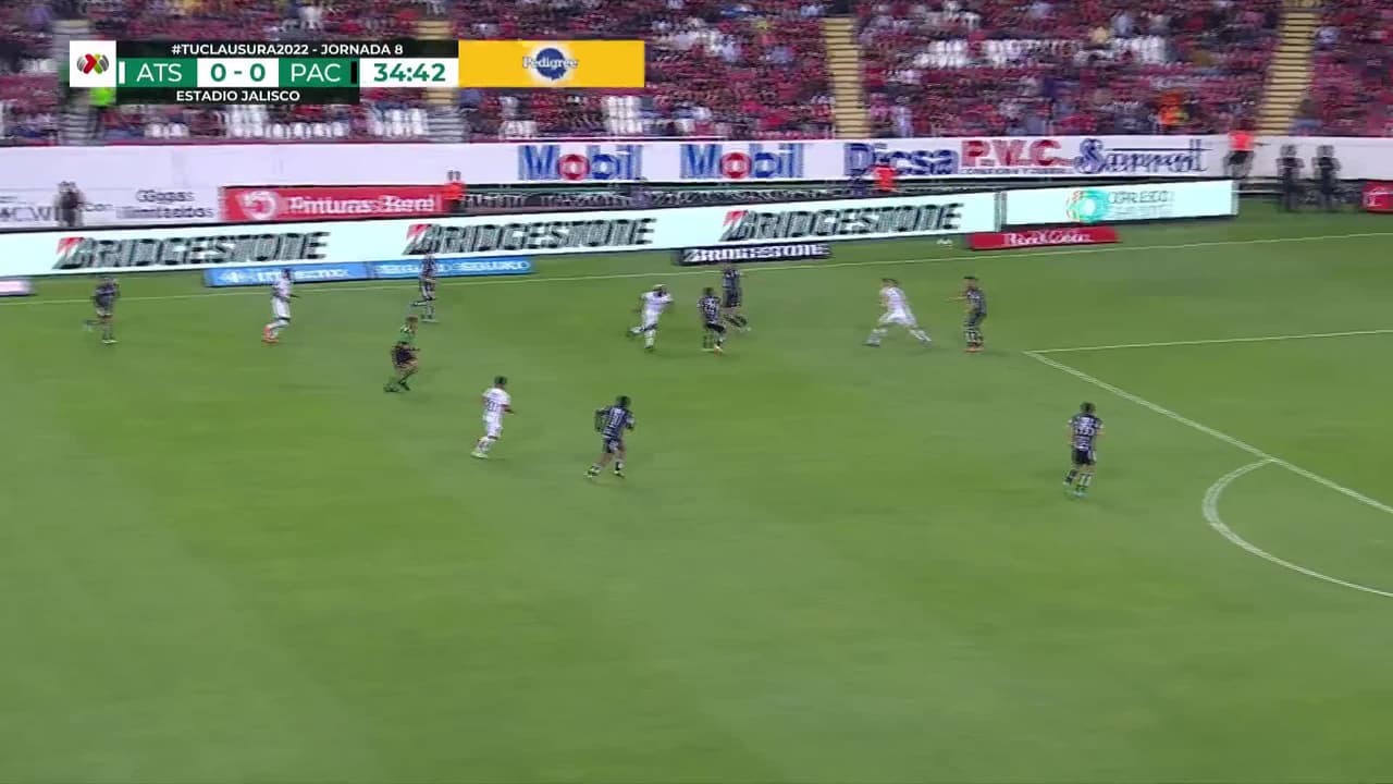 Tiro atajado raso al centro del arco. Romario Ibarra (Pachuca) Disparo con la derecha desde el centro del área.