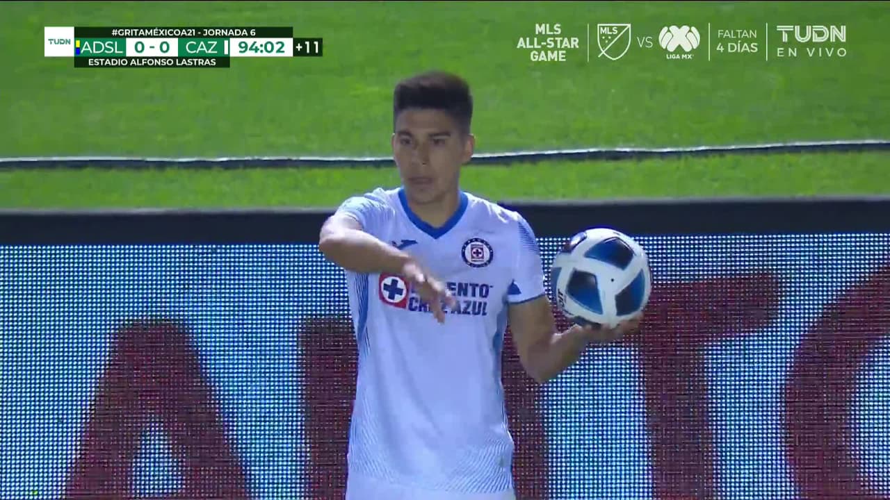 Tiro atajado raso al centro del arco. Rómulo Otero (Cruz Azul) Disparo con la derecha desde fuera del área.