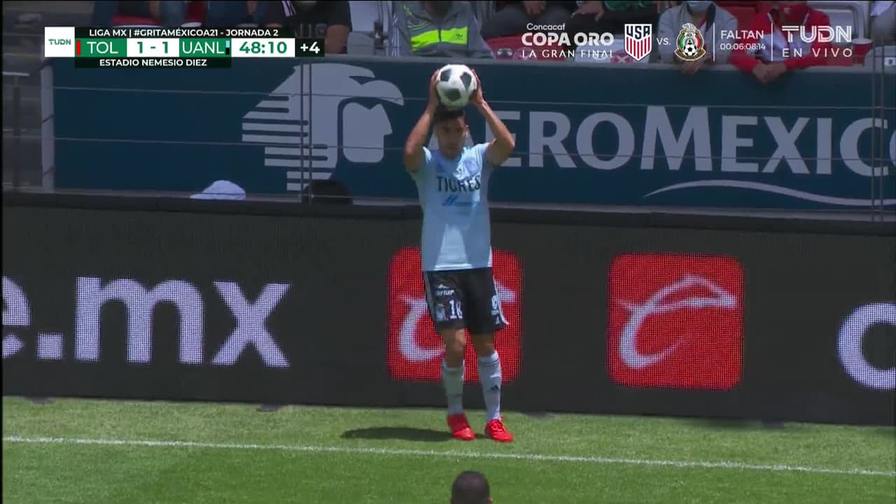 Tiro atajado. Rubens Sambueza (Toluca) Disparo con la derecha desde muy lejos y sin ángulo.