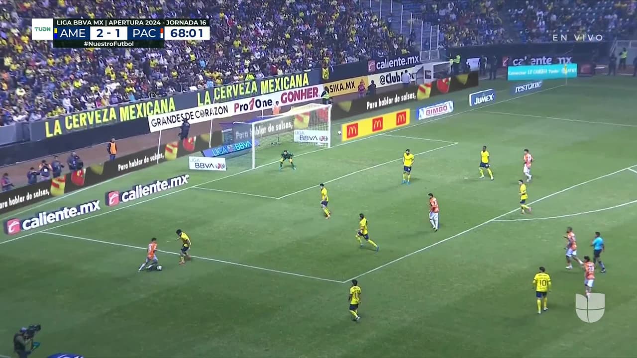 Tiro atajado raso al centro del arco. Salomón Rondón (Pachuca) Disparo con la derecha desde fuera del área. Asistencia de Nelson Deossa.