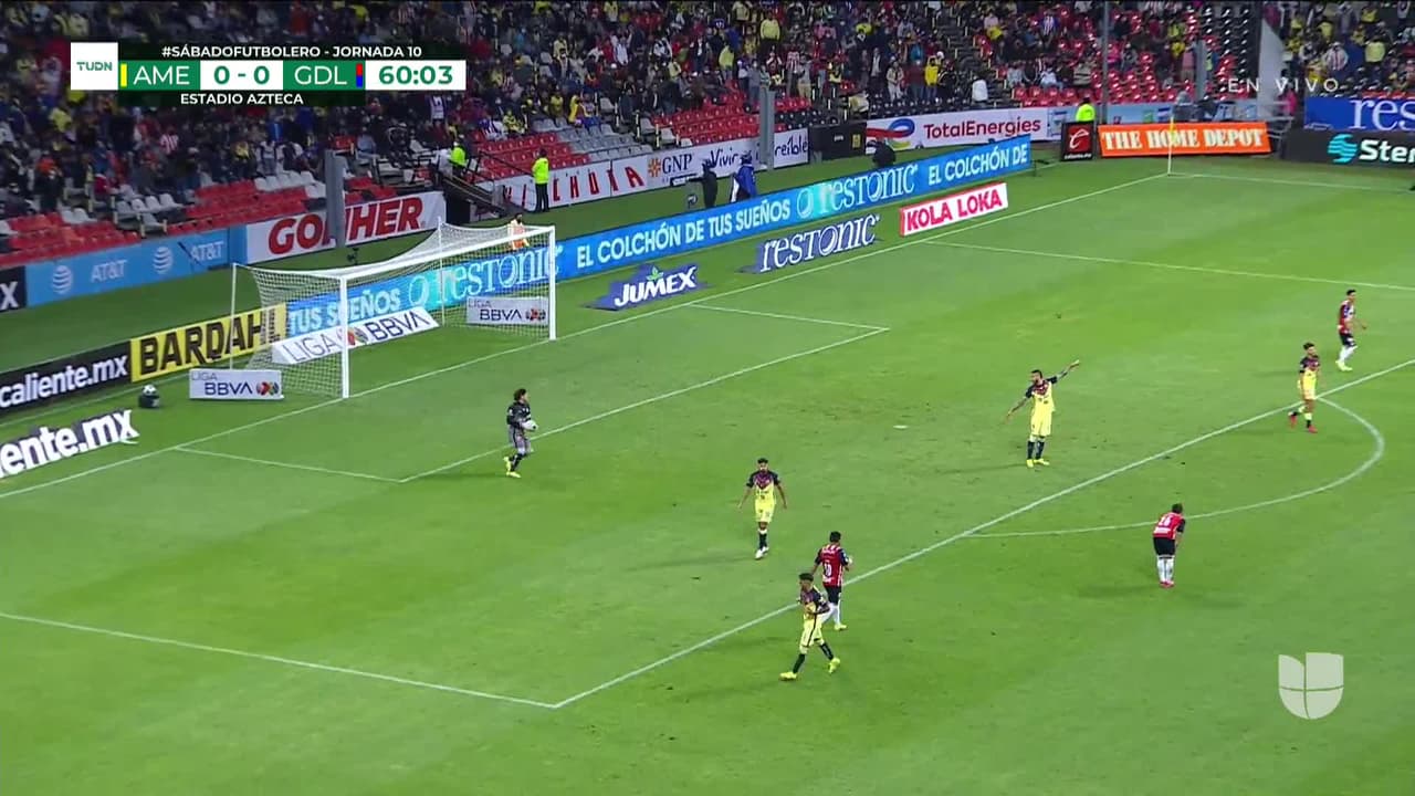 Tiro atajado raso al centro del arco. Salvador Reyes (América) zurdazo desde el lado izquierdo dentro del área.