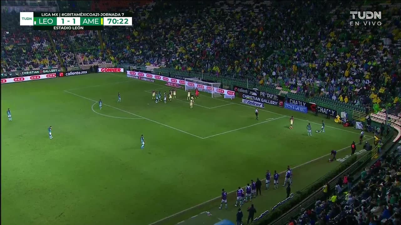 Remate parado bajo palos a rás de suelo. Santiago Colombatto (León) remate con la izquierda desde muy cerca. Asistencia de Víctor Dávila con un pase de cabeza.
