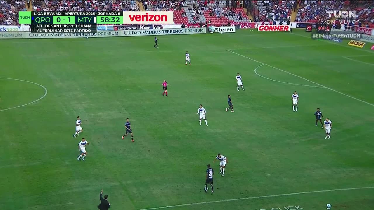 Tiro atajado. Santiago Homenchenko (Querétaro) zurdazo desde fuera del área.
