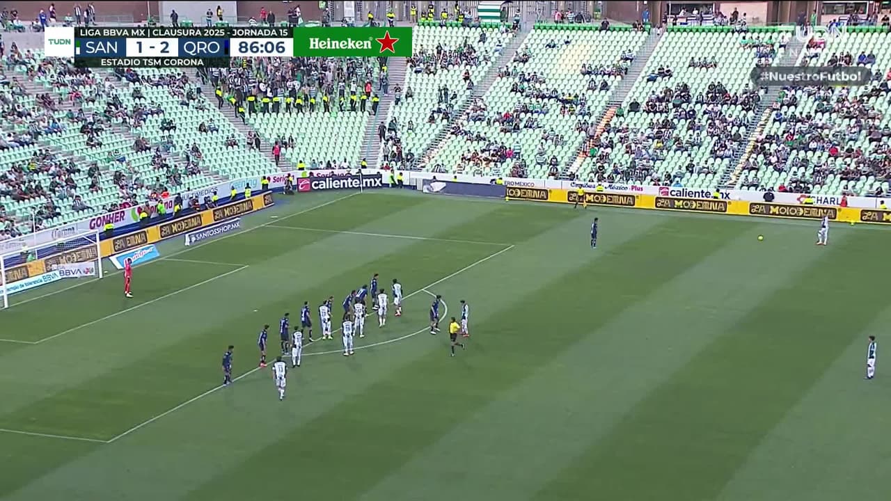 Tiro atajado. Sebastián Hernández (Querétaro) zurdazo desde el centro del área.