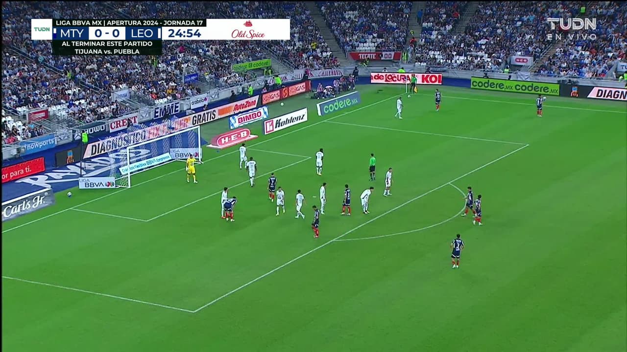 Tiro atajado Por arriba en el centro del arco. Sergio Canales (Monterrey) zurdazo desde fuera del área. Asistencia de Óliver Torres.