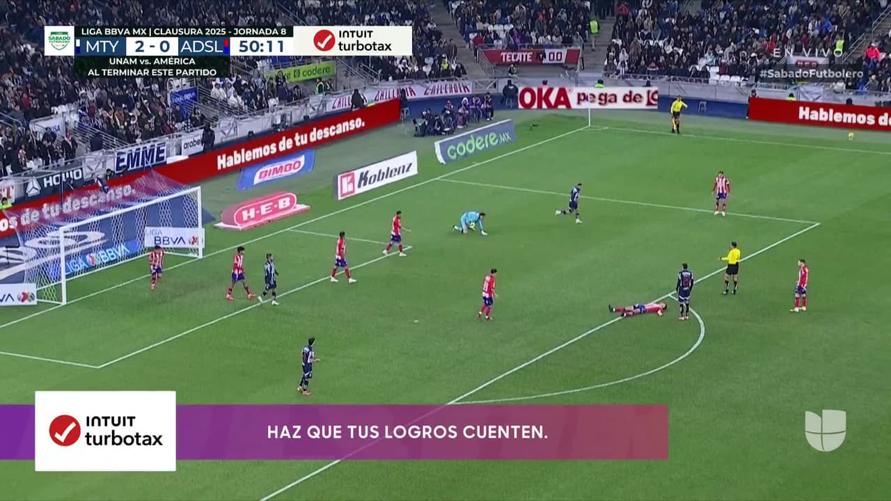 Tiro atajado. Sergio Canales (Monterrey) Disparo con la derecha desde el lado derecho dentro del área.