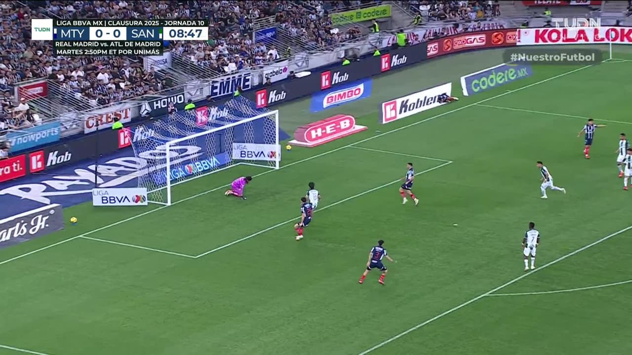 Tiro atajado raso al centro del arco. Sergio Canales (Monterrey) zurdazo desde fuera del área.