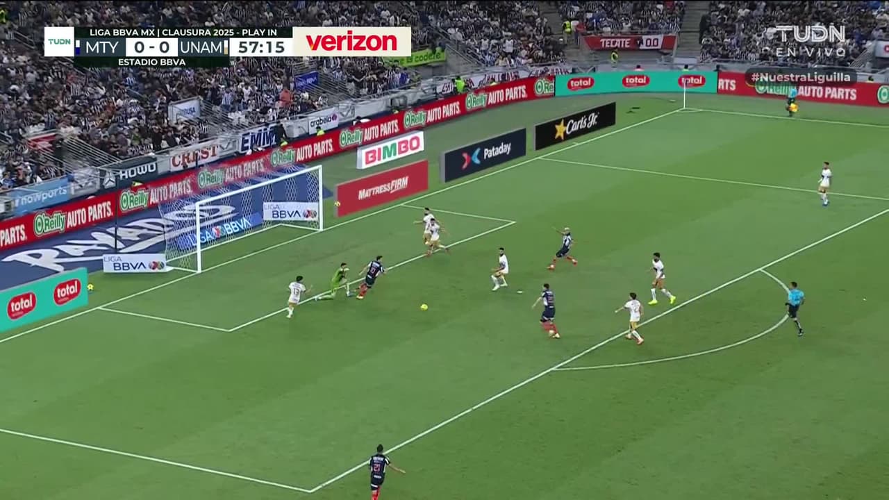 Tiro atajado raso al centro del arco. Sergio Canales (Monterrey) zurdazo desde el centro del área.