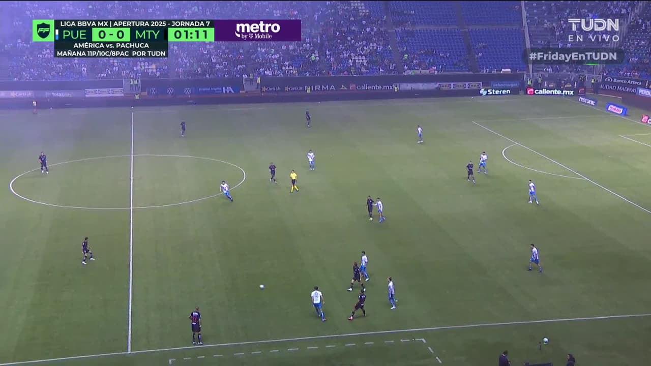 Tiro atajado Por arriba en el centro del arco. Sergio Canales (Monterrey) disparo de cabeza desde el centro del área. Asistencia de Lucas Ocampos pase largo.